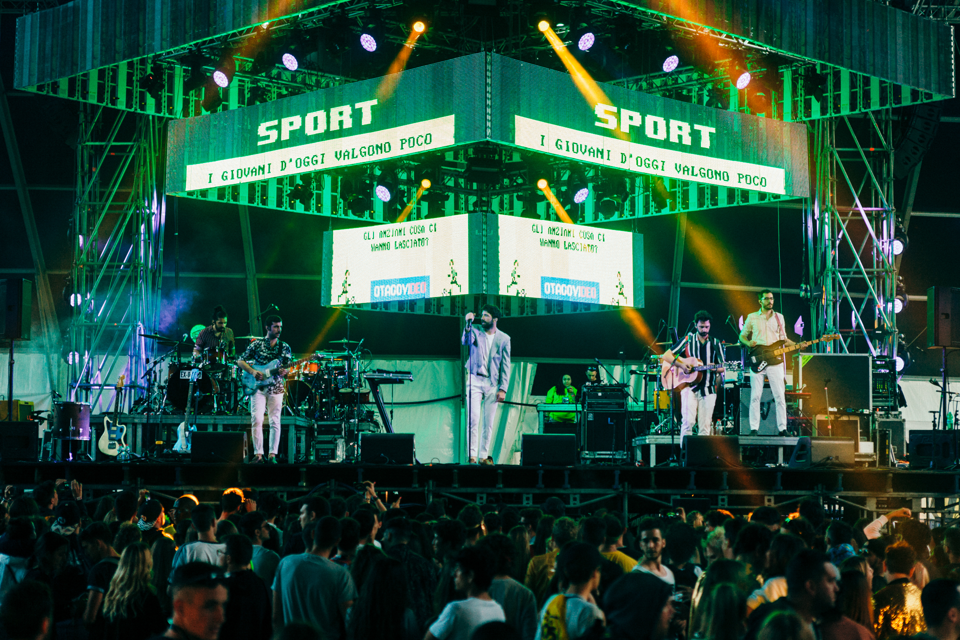 Lo show si apre con Mare, uno dei grandi classici della band, e con i synthwave elettronici di Bambini che hanno dato il benvenuto al pubblico, che dal primo attacco canta tutto assieme a Maurizio. Un’atmosfera indimenticabile, da notte di mezz’estate con Gli occhi della Luna e Tu non mi parli più suonata per la prima volta dal vivo.