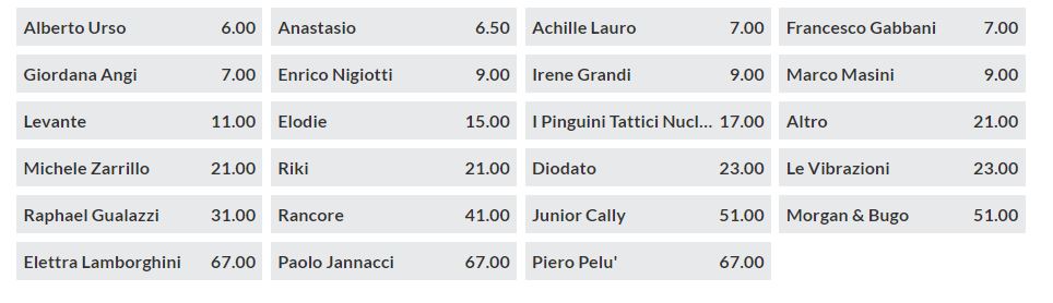 E quest’anno chi è il favorito? Ecco di seguito tutte le quote del Festival di Sanremo.