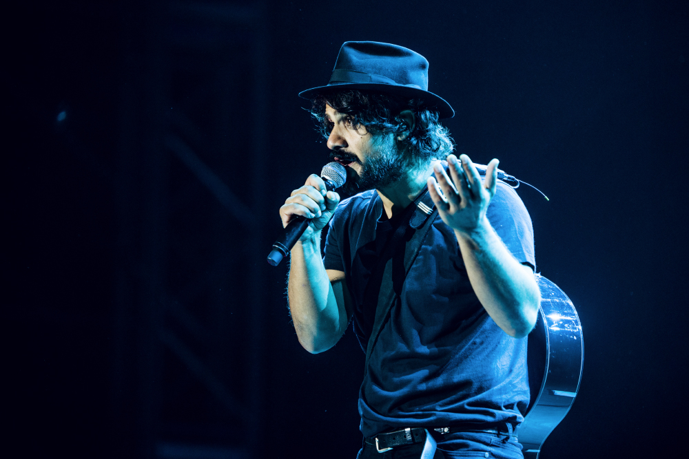 Il cantautore si è esibito con la sua band composta da straordinari musicisti: alle percussioni il brasiliano MAURO REFOSCO che nella sua carriera ha calcato i palchi di artisti internazionali come David Byrne, Red Hot Chili Peppers e fa parte delle band Atoms for Peace e Forrò in the Dark; alla batteria PUCCIO PANETTIERI, tra i migliori italiani in circolazione.